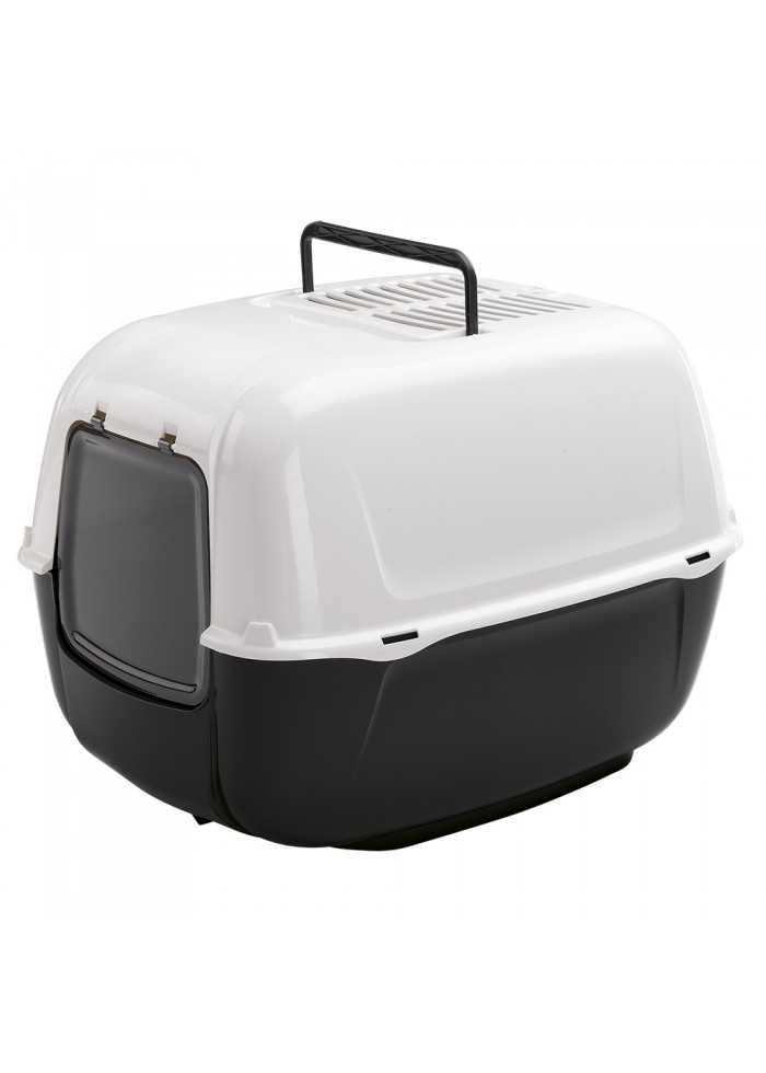 Ferplast Prima e закрита котешка тоалетна. С филтър от активен въглен и подвижна вратичка за намаляване на неприятните миризми. С удобна дръжка за лесно пренасяне. Различни цветове