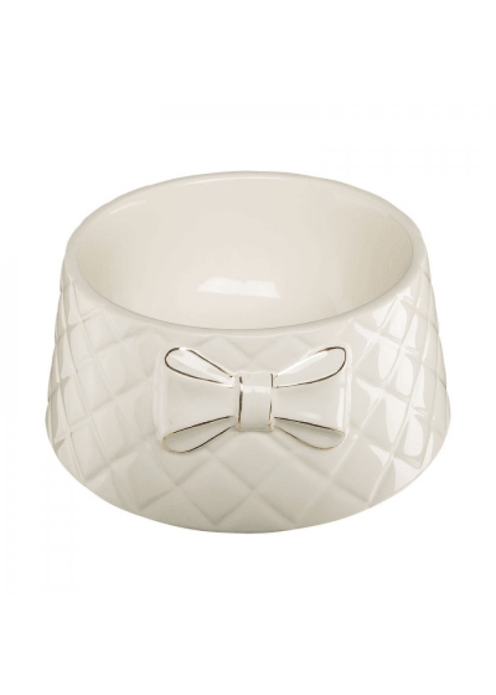 Елегантна керамична купа за кучета и котки. С класическа кръгла форма, бяла гланцова повърхност, декоративна панделка. Подходяща за вода и храна. Лесна за почистване.
